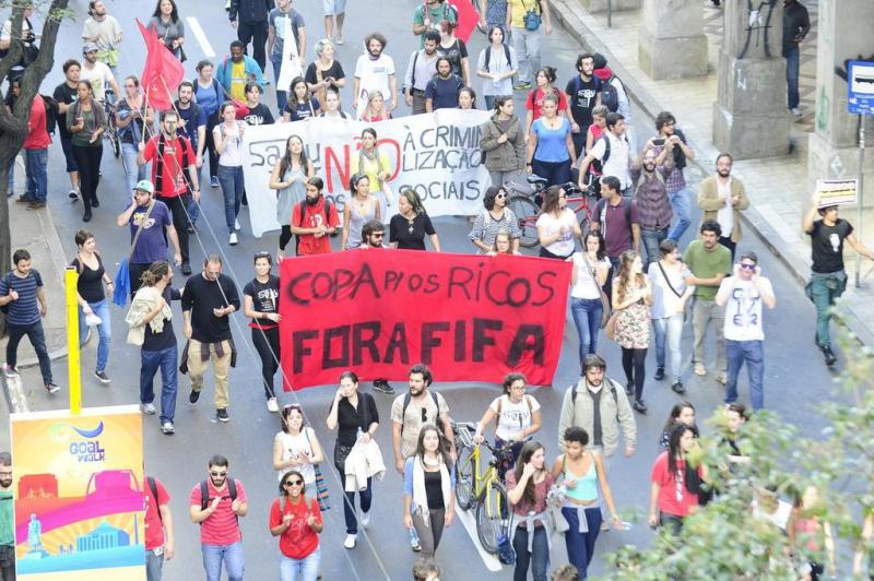 A manifestação tem a participação de movimentos estudantis, sindicais e comunistas, entre outros. Os grupos questionam mortes durante construção de estádios, remoções para obras e gastos públicos com o evento. O texto publicado na página do Bloco de Luta pelo Transporte Público, que reúne diferentes organizações, ressalta reivindicações como "direito a livre manifestação", "desmilitarização da polícia" e "dignidade da população em situação de rua".